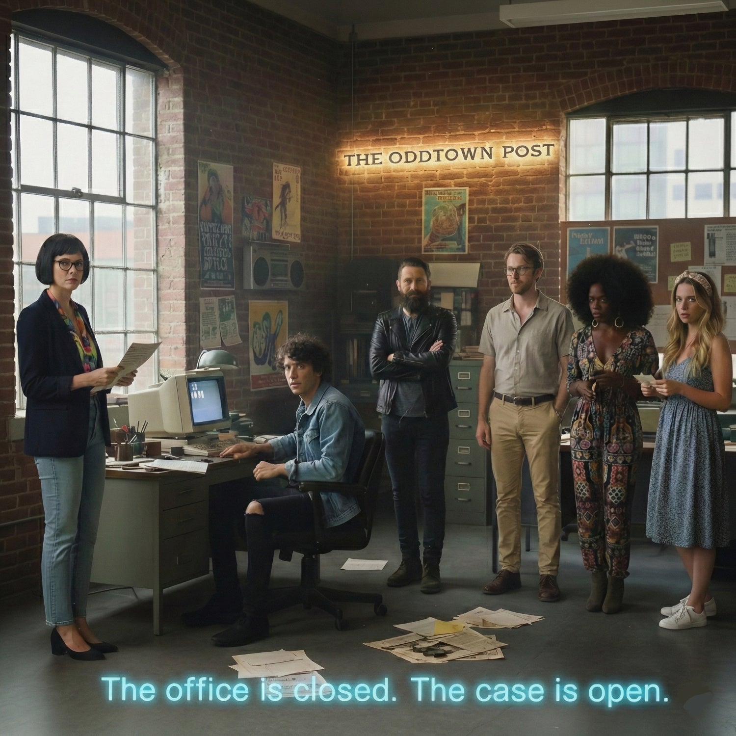 Grappling with political unrest during the 1985 mayoral election, the city of Oddtown is thrown into further chaos when the Editor-in-Chief of the local newspaper, The Oddtown Post, is found murdered in his office. The only other people on the premises were six of his coworkers. They all seem to be hiding something and may even have motive to kill the victim. The Sheriff has reached out for your help with the investigation and is sending over clues.